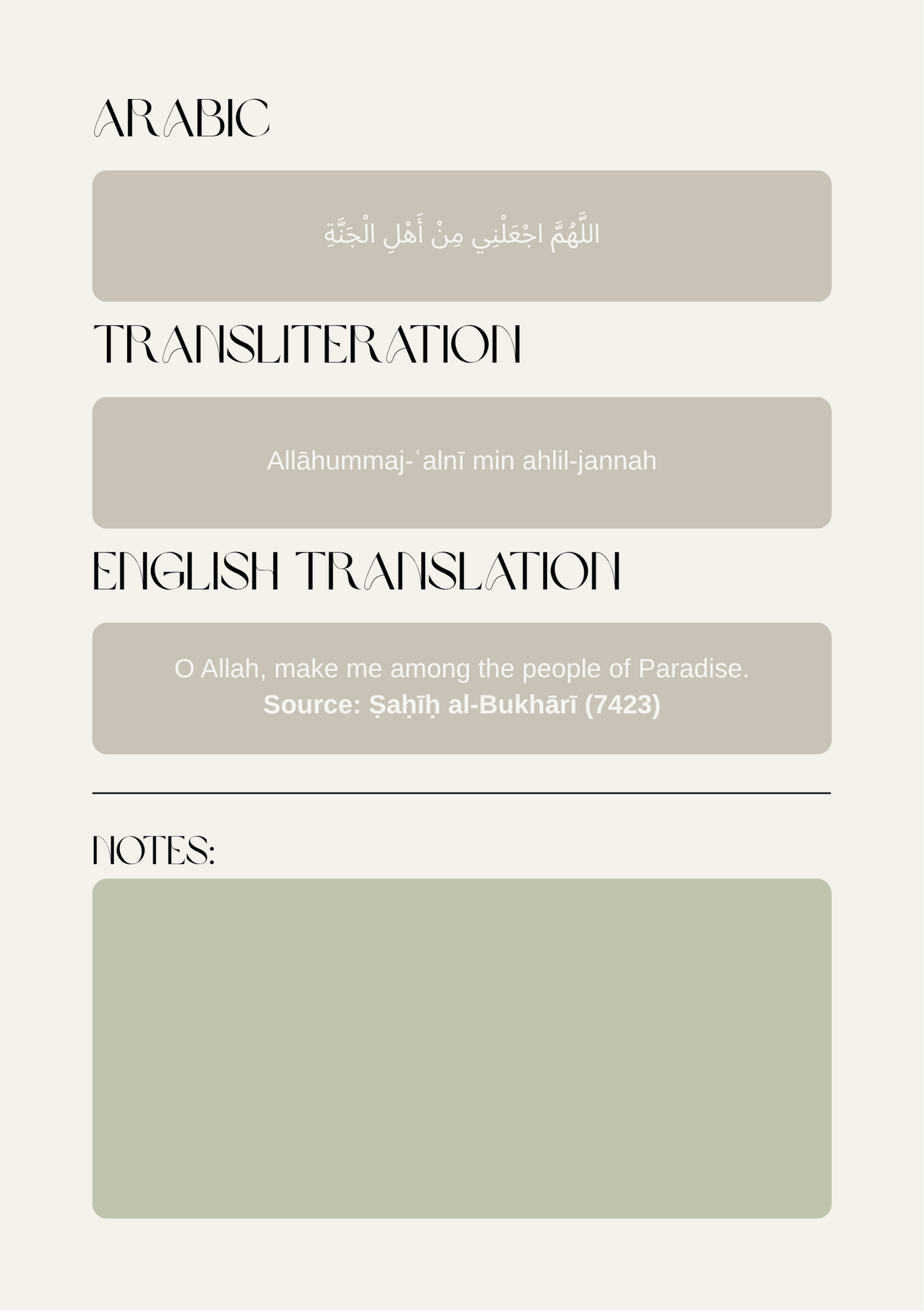 | Discover a thoughtfully curated collection of 100 authentic duʿas drawn directly from the Qurʾan and Sunnah, each presented with the original Arabic text, precise transliteration, and clear English translation. Meticulously sourced from only sahih or ḥasan narrations, this volume serves as an invaluable companion for those seeking to deepen their spiritual practice with confidence and understanding. Ideal for memorisation, reflection, and heartfelt supplication, it supports daily worship, educational settings, and personal journaling. Embrace these timeless prayers to nurture your connection with Allah, inviting healing, steadfastness, and spiritual closeness into your life. |