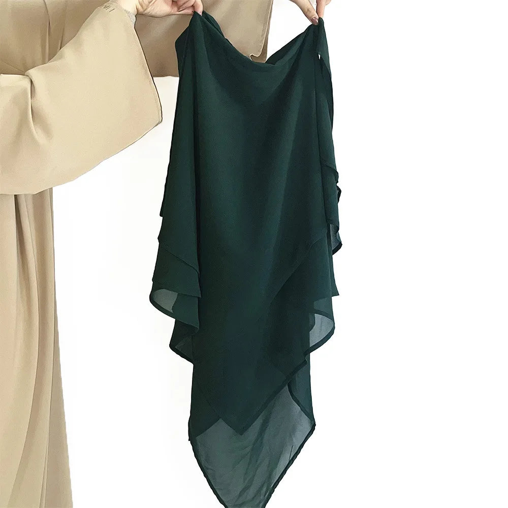 A graceful two-piece set combining a chiffon Amira-style hijab with a matching niqāb. Lightweight and breathable, it provides elegant modesty with effortless wear, making it perfect for daily use, prayer, or gatherings.