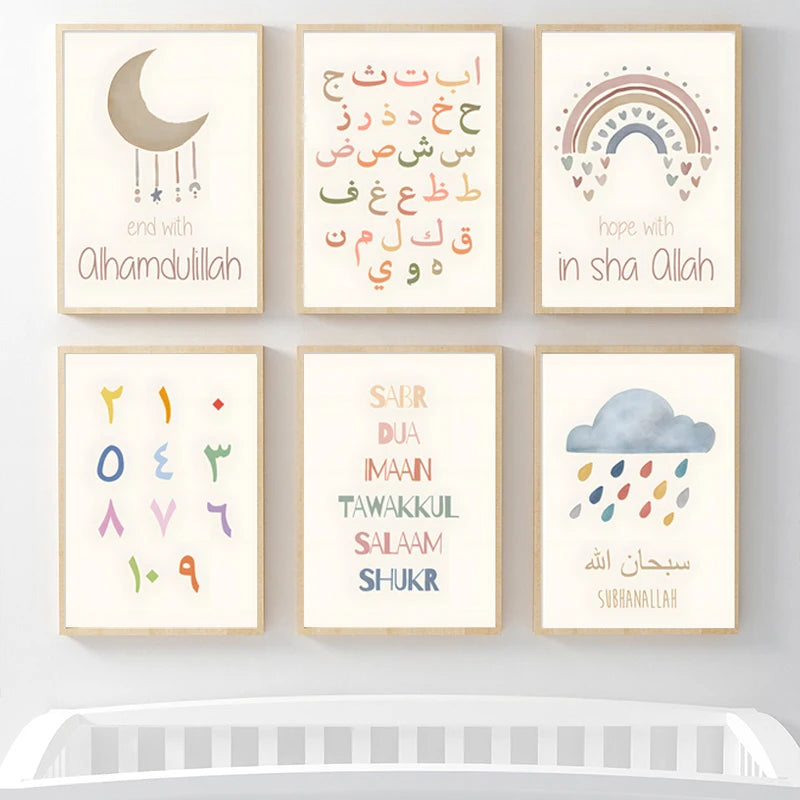 Faith-inspired wall art designed to brighten children’s rooms with reminders of duʿās, sunnah habits, and adab. Featuring soothing colours and playful designs, it nurtures love for Islam while creating a calming and purposeful environment. (Frame not included.)