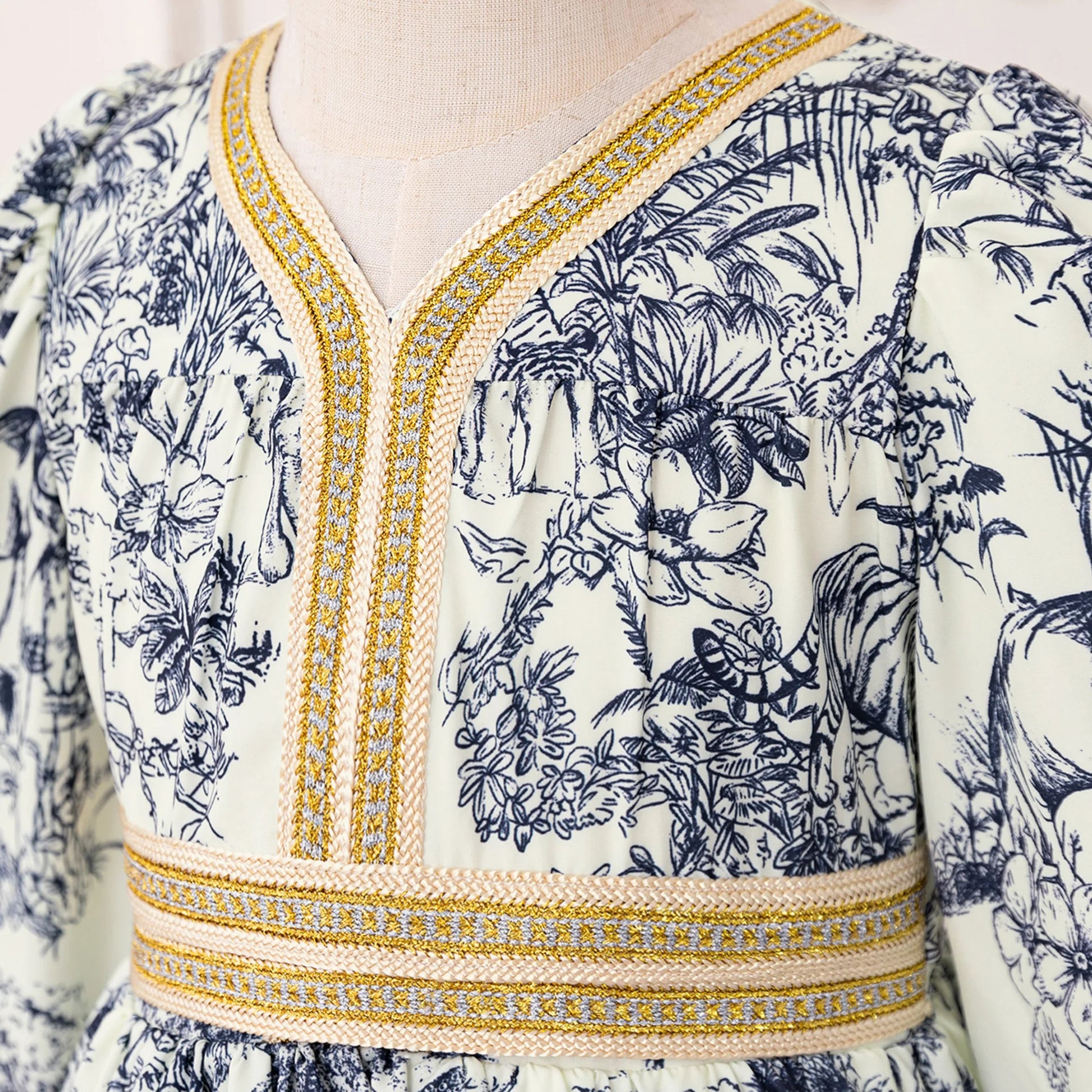 A graceful gown designed for young girls to celebrate Eid with elegance and modesty. Crafted from soft, breathable fabric, it combines comfort with festive detail, making it the perfect choice for prayer, family gatherings, and joyous celebrations.