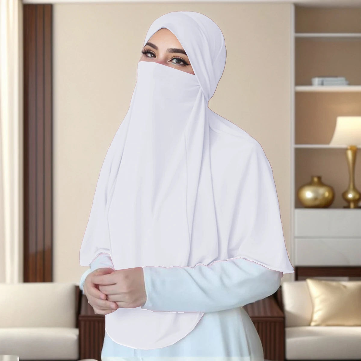 A practical and modest instant niqab and hijab set designed for ease and comfort. Made from lightweight polyester, it provides full coverage while being breathable and easy to wear. With its instant style, it requires no pins or extra effort, making it perfect for daily use, prayer, or travel.