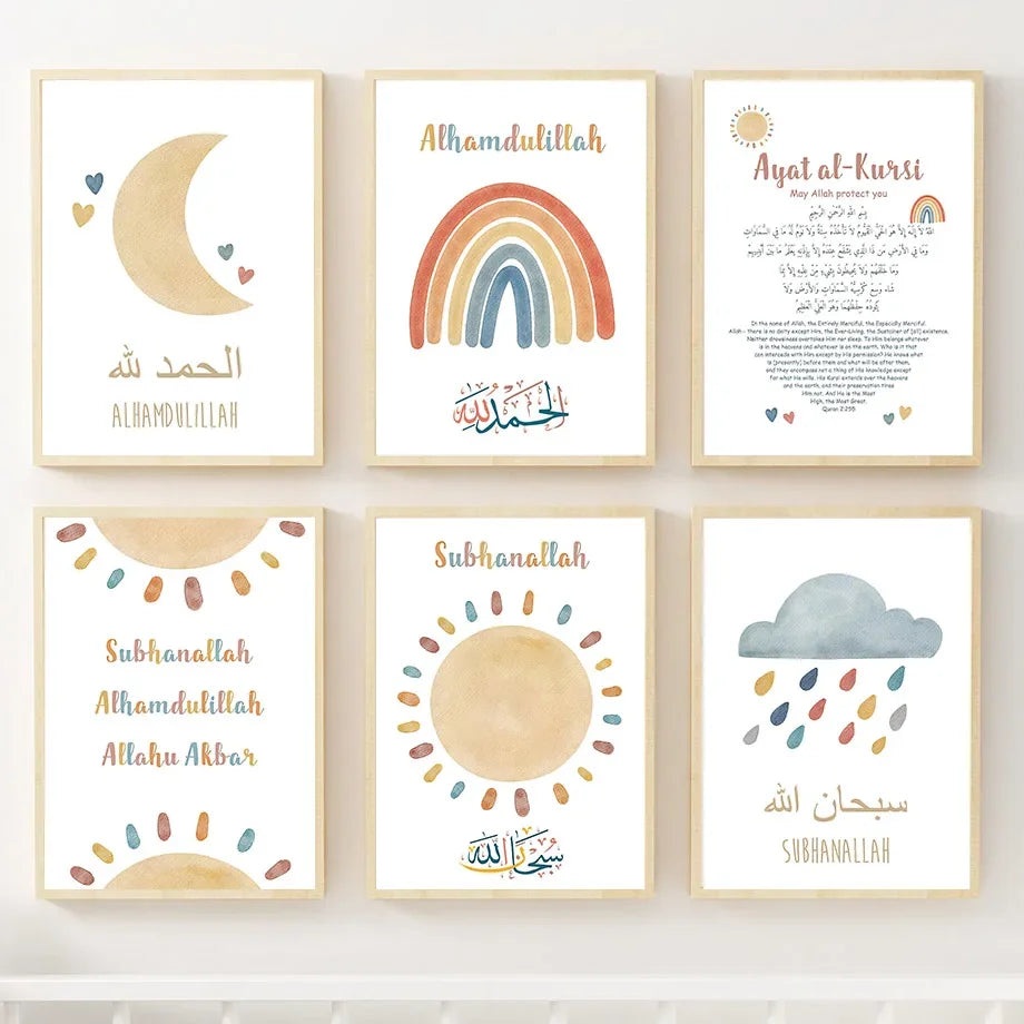 Faith-inspired wall art designed to brighten children’s rooms with reminders of duʿās, sunnah habits, and adab. Featuring soothing colours and playful designs, it nurtures love for Islam while creating a calming and purposeful environment. (Frame not included.)