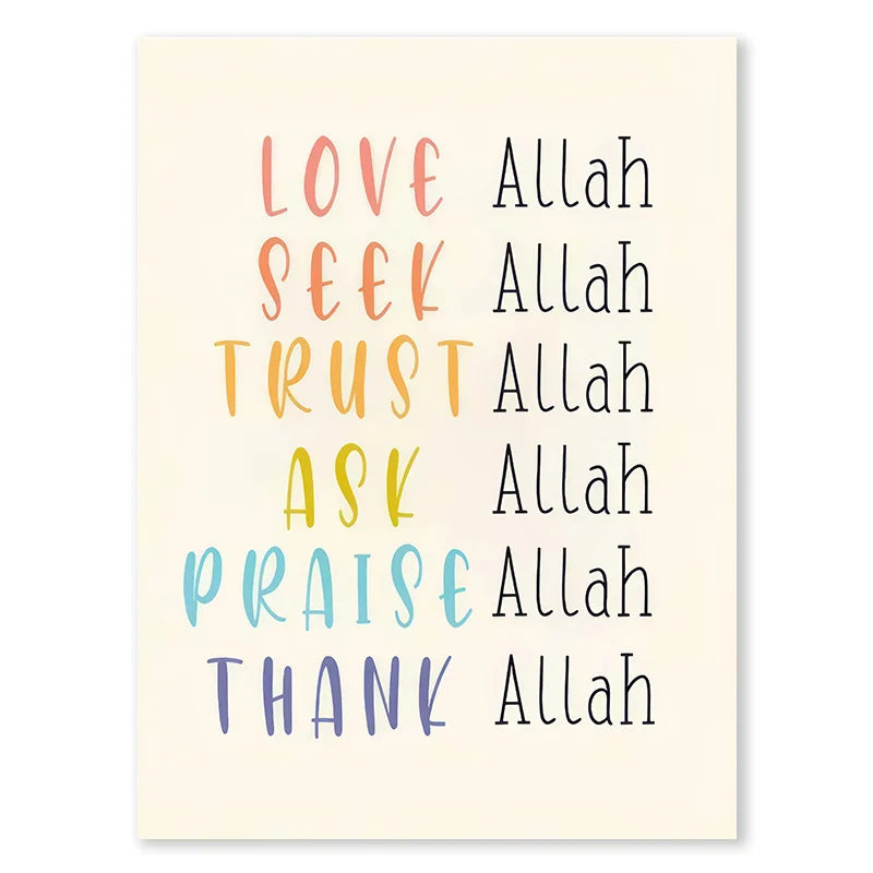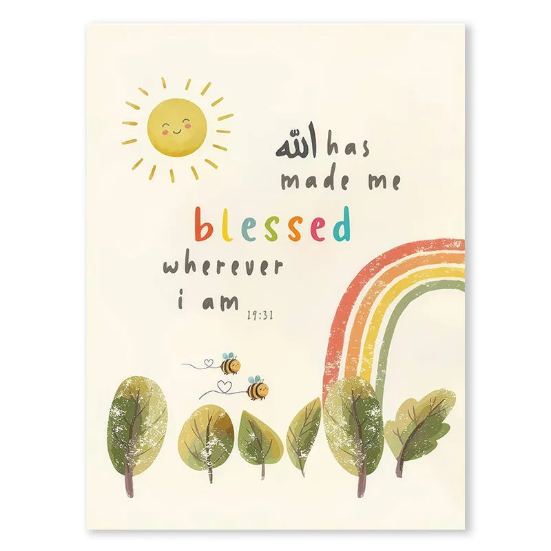 Faith-inspired wall art designed to brighten children’s rooms with reminders of duʿās, sunnah habits, and adab. Featuring soothing colours and playful designs, it nurtures love for Islam while creating a calming and purposeful environment. (Frame not included.)