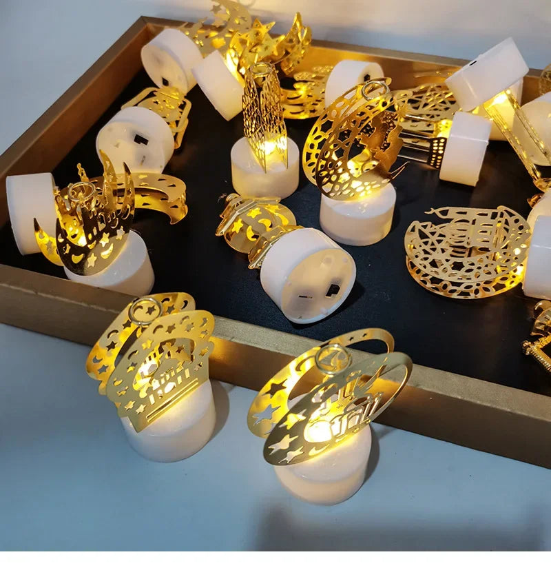 Beautiful LED candles designed with Islamic-inspired prints, combining elegance with safety. Crafted from durable iron with a gold-plated finish, they add a warm glow to prayer corners, iftar tables, or festive décor without the worry of open flames.