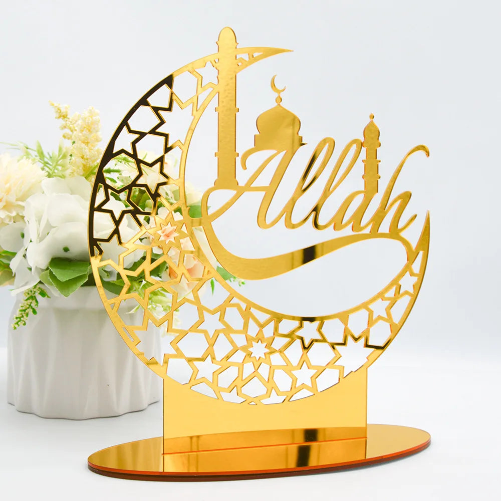Elegant acrylic ornaments that light up with a gentle glow, designed with Islamic motifs and calligraphy such as Allāh, Ramadan Kareem, and Eid Mubarak. Perfect for decorating prayer spaces, iftar tables, or festive gatherings, they bring both beauty and remembrance into the home.