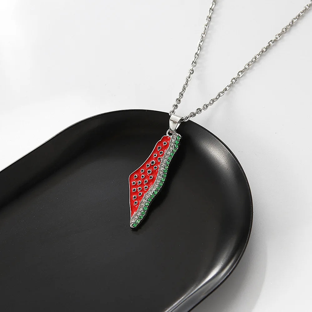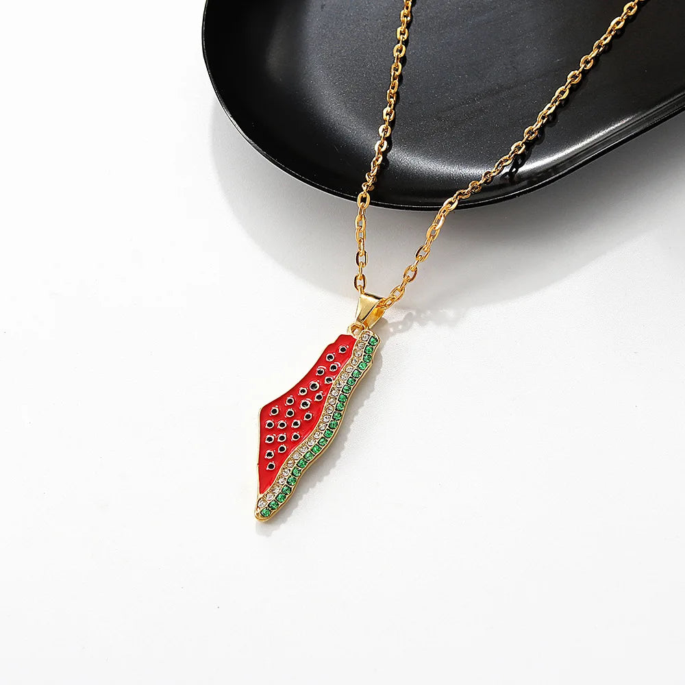 A meaningful necklace designed in the shape of Palestine, filled with the iconic watermelon colours that symbolise resilience and solidarity. Lightweight and elegant, it serves as both a cultural statement and a reminder of unity, making it perfect for women-only gatherings or as a heartfelt gift.