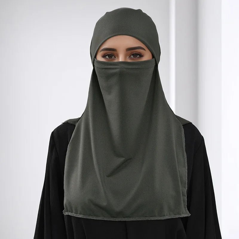A practical and protective niqāb layer designed for active use and as an underlayer beneath other niqābs. Made from breathable, stretchable fabric, it ensures face coverage in all conditions — whether for sport, cold weather, or as extra security against untied niqābs.
